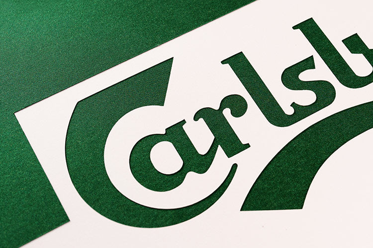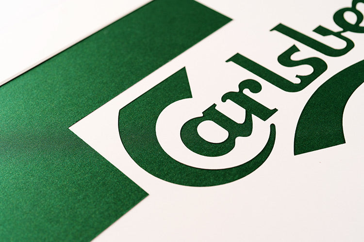 Layered print using a combination of premium card stocks including a metallic green paired with a pristine matt white.